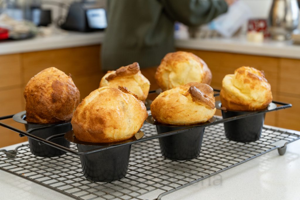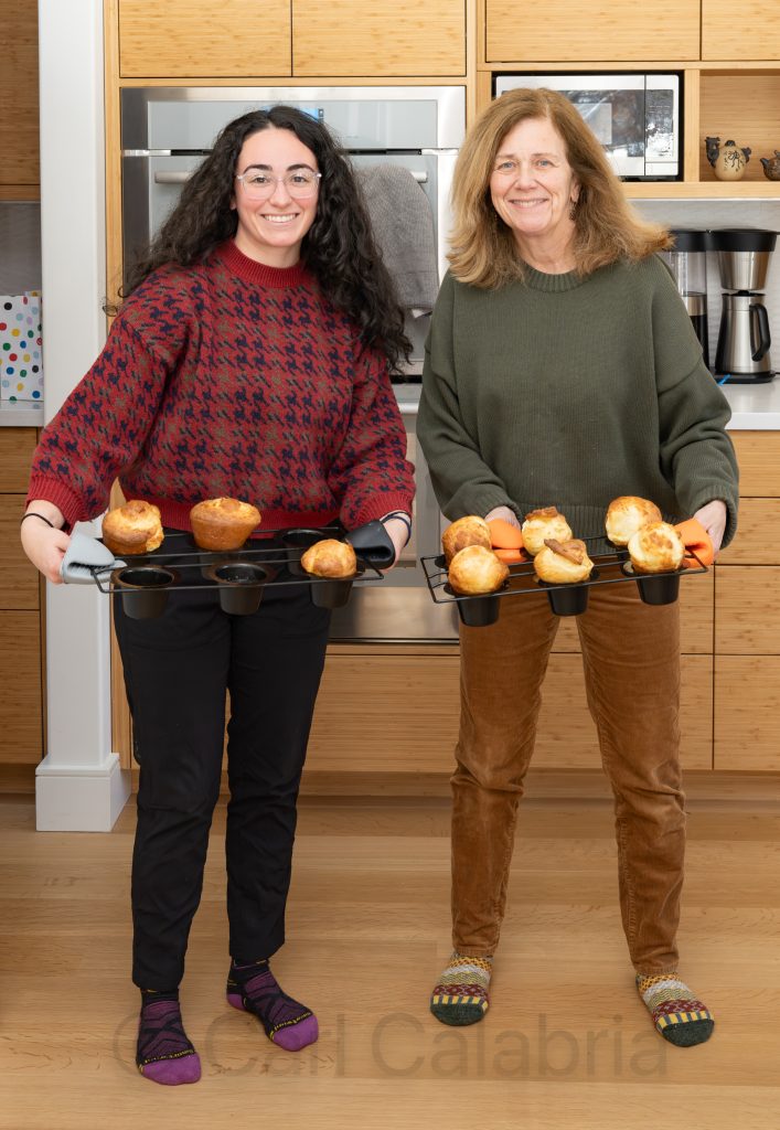 Not satisfied with the structural properties of this year’s Christmas popovers, Jeanine enlisted Maya’s help to try new recipe refinements and variations in cooking temperature and time. The pair spent hours in the effort and finally produced what I, an official taste tester, deem to be the best popovers ever. Once the optimal outcome was achieved, Maya documented every aspect of the formulation and process. Regretably, she rejected my suggestion to name these creations – Momayas, a concatenation of “mom” and “Maya.”