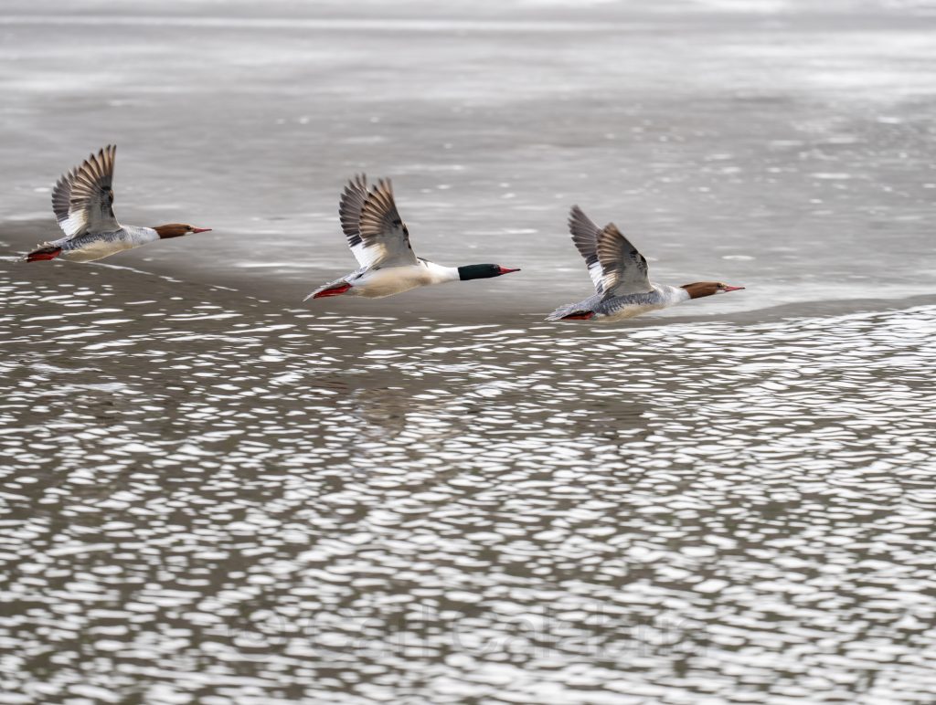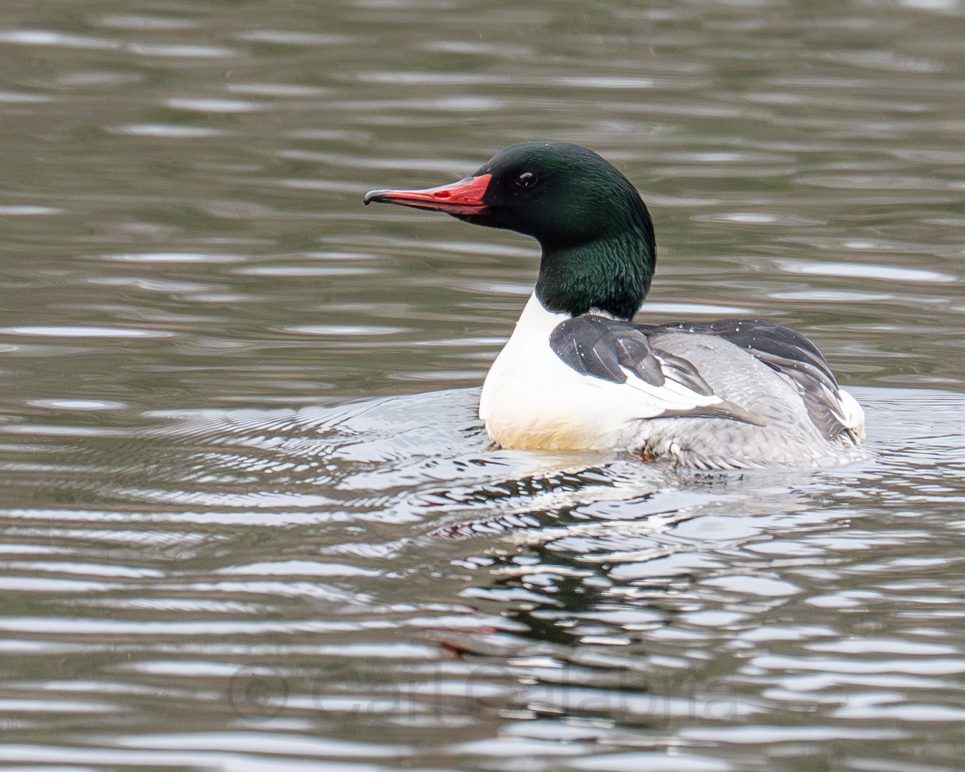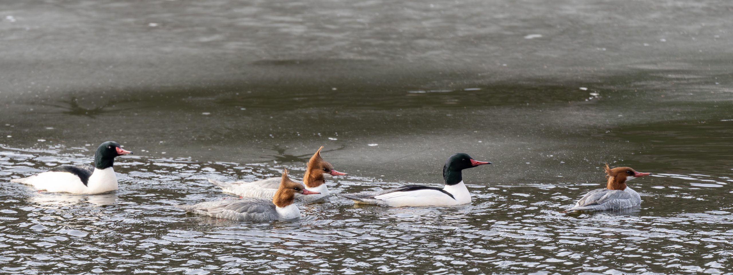 For several days now, we have been visited by a flock of Common Merganser ducks. They often fly very close to the water, and watching them do a water landing is very entertaining, something I have yet to get a picture of. Also hanging out in the neighborhood was a very well-nourished beaver and a red-tailed hawk on the look out for lunch.
