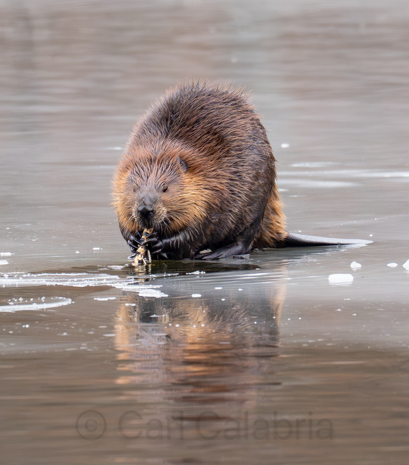 Warmer temperatures have caused the frozen Sudbury River in front of our house to begin thawing from the middle out. As the sun was setting this evening, it made for an interesting linear reflection strip. We are expected to enjoy a few more days of warm weather before the mercury is expected to plummet next week.