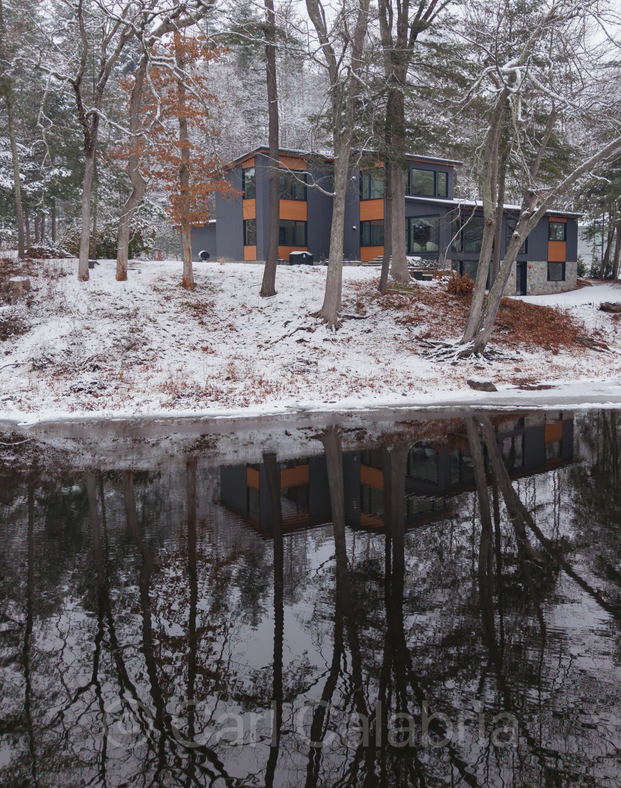 Jeanine and Lauren got an early start on their drive to Burlington, VT, where they will spend the next couple of days visiting with their sister. Closer to home, we had a dusting of snow that was enough to get me out of the house for some photography. I managed a blurry shot of a Bald Eagle that was perched right in front of the house; he flew off before I could get my camera properly stabilized, and I took advantage of the nice reflections off the river to get a winter scene of the house with my drone.