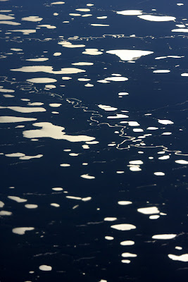 Early this morning I began the 40 hour journey from Boston to Shanghai by way of New York and Hong Kong. This route takes you over the North Pole. Pictured here are polar ice flows as viewed from 36,000 feet. Some of the bigger chunks are hundreds of miles across.