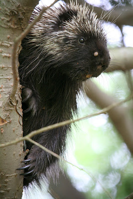 As we pulled up to the lodge, I spotted this porcupine in the field. I was amazed at how close it allowed me to get before raising its quills into a defensive posture. Jeanine seemed to believe that they are able to launch their quills rendereing would be attackers incapacitated. I did not subscribe to this theory and continued at close distance as the porcupine, in no apparent hurry, retreated to its tree. I had no idea that they slept in trees.