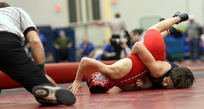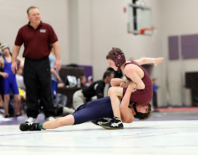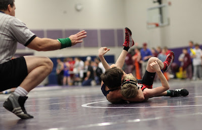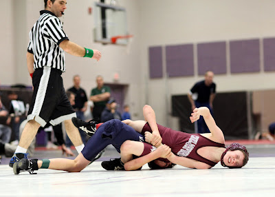 I spent the better part of the day with Nico at a wrestling tournament in North Andover. He won his opening match with his first pin of the season and lost his second two in well-fought battles. Here, he sets up the move that leads to the pin.