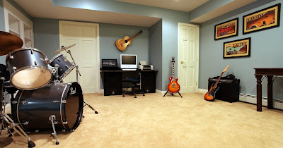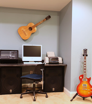 For the last few days the family has been working together to organize and decorate the basement. One section has been devoted to music. We hung Nicolai’s signed Van Halen cymbal over his drum set.