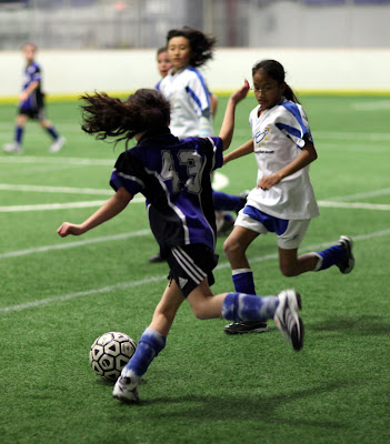 It has been a while since I have had a chance to watch Maya play indoor soccer. Given the holiday, I was able to attend her game this afternoon and was delighted to watch her move with such grace and power.