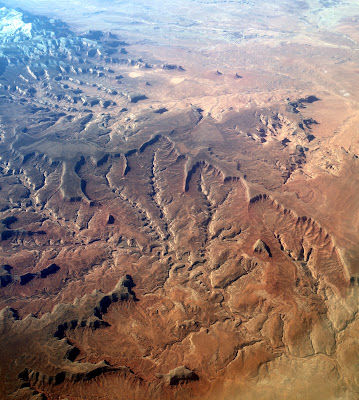 Today begins a one week solo adventure during which I will travel 7150 miles (6000 in the air, 1100 by car, and 50 on foot). During my flight from Boston to LA en route to Page, Arizona, I am lucky to fly directly above the terrain over which I will be hiking in the coming days.