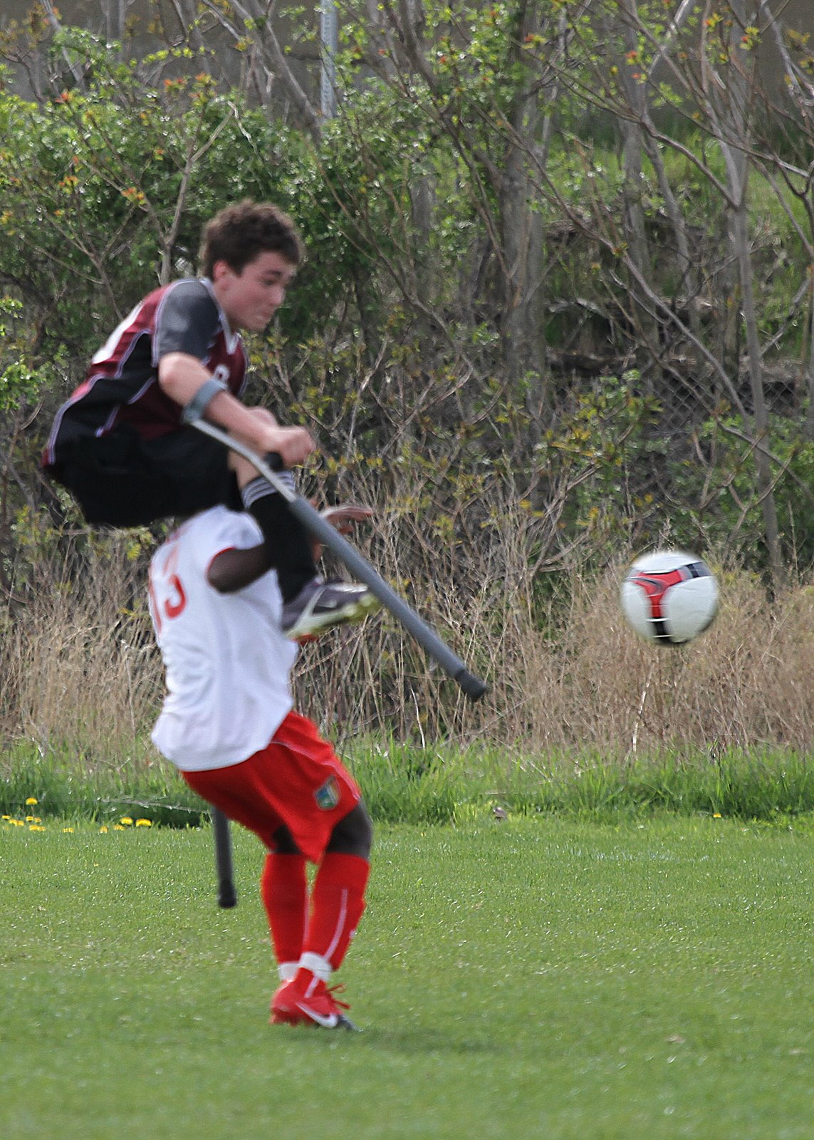 I may have to add bronco riding to the list of Nicolai’s activities I published yesterday for I don’t believe jumping onto your opponent’s shoulder is a sanctioned part of playing soccer. I wish I could have nailed the focus but am glad to have the shot. Nicolai is now playing with the Concord Carlisle Division 1 Travel team and he remains very competitive on the field.
