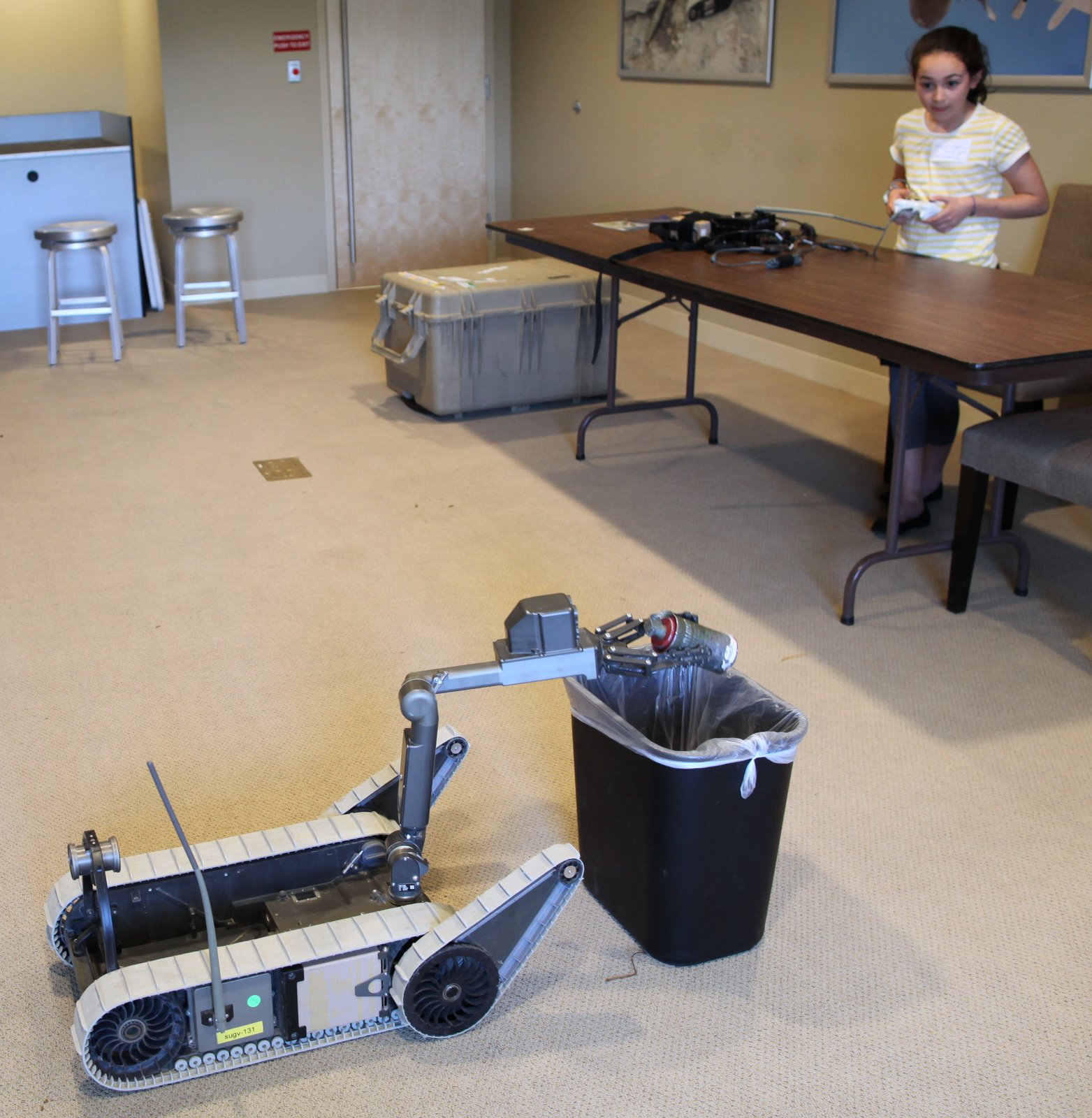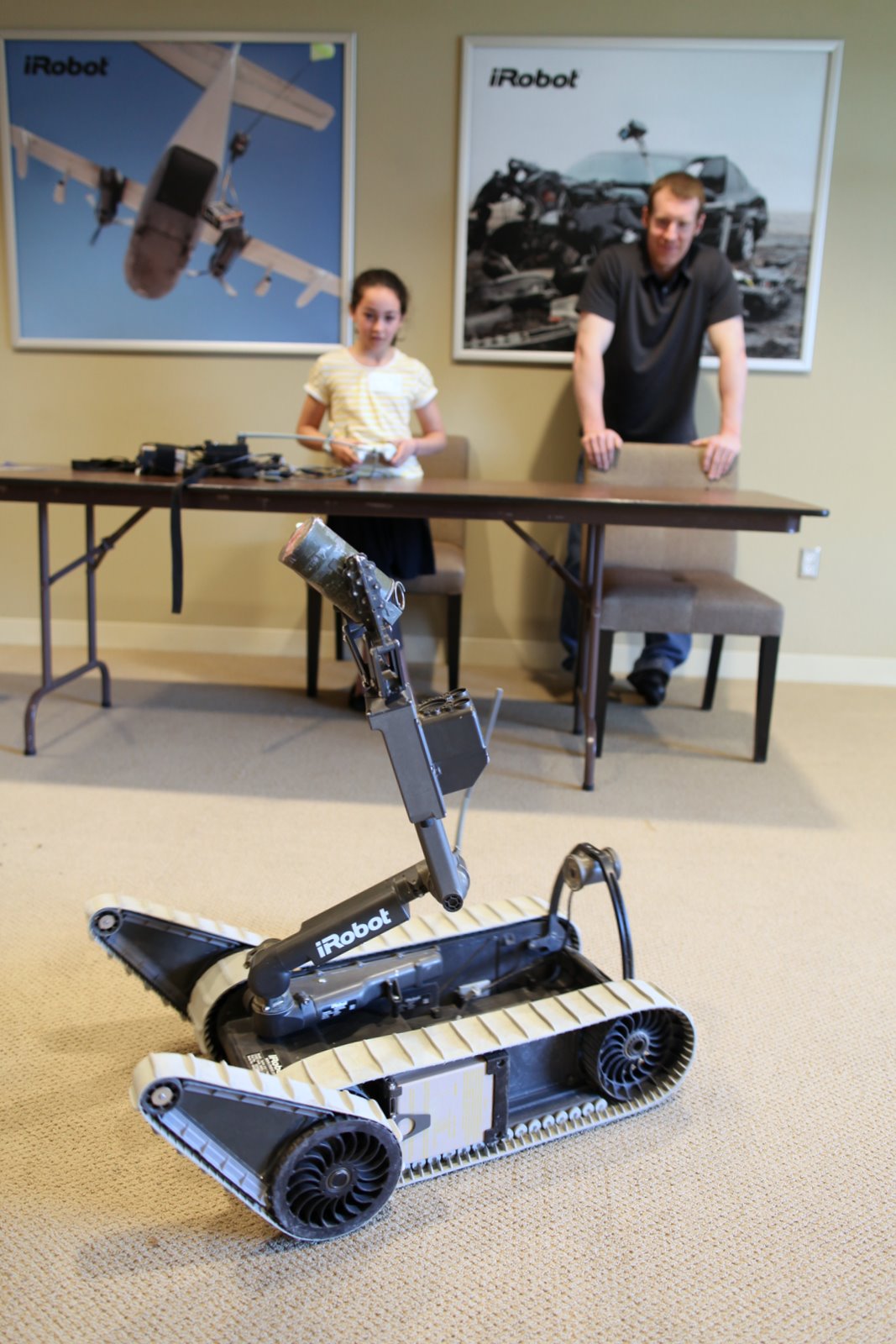 Today was Bring Your Daughter or Son to Work Day at iRobot. Nico and Maya joined me for what was a very enjoyable morning. Maya operates a PackBot on a simulated ordinance disposal mission. Both got to meet the company’s founder and CEO who gave them a personal tour of our robot museum.