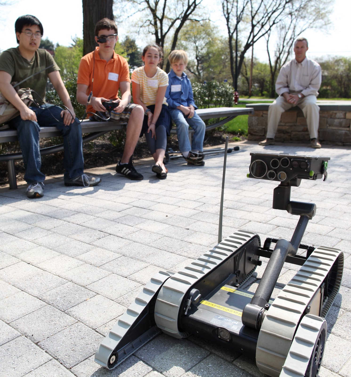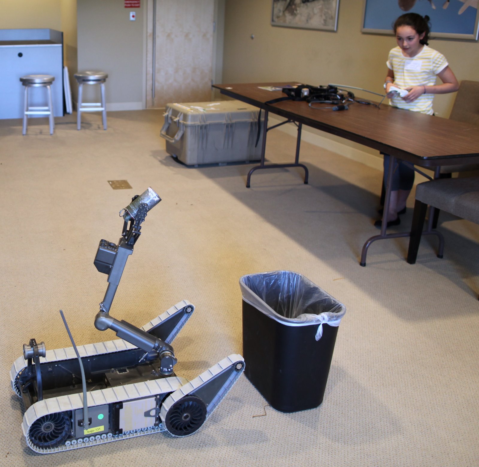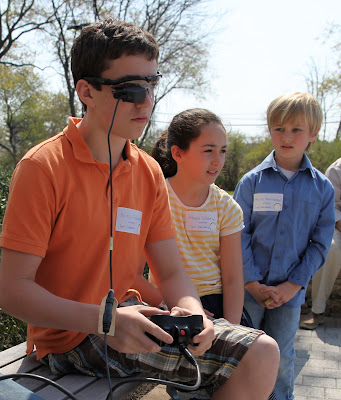 Nicolai using a heads up display navigates a PackBotequipped with a vision head. He also submitted a robot design (one of the activities during the day) which has serious potential as a product. The idea is so good I am not at liberty to disclose it.