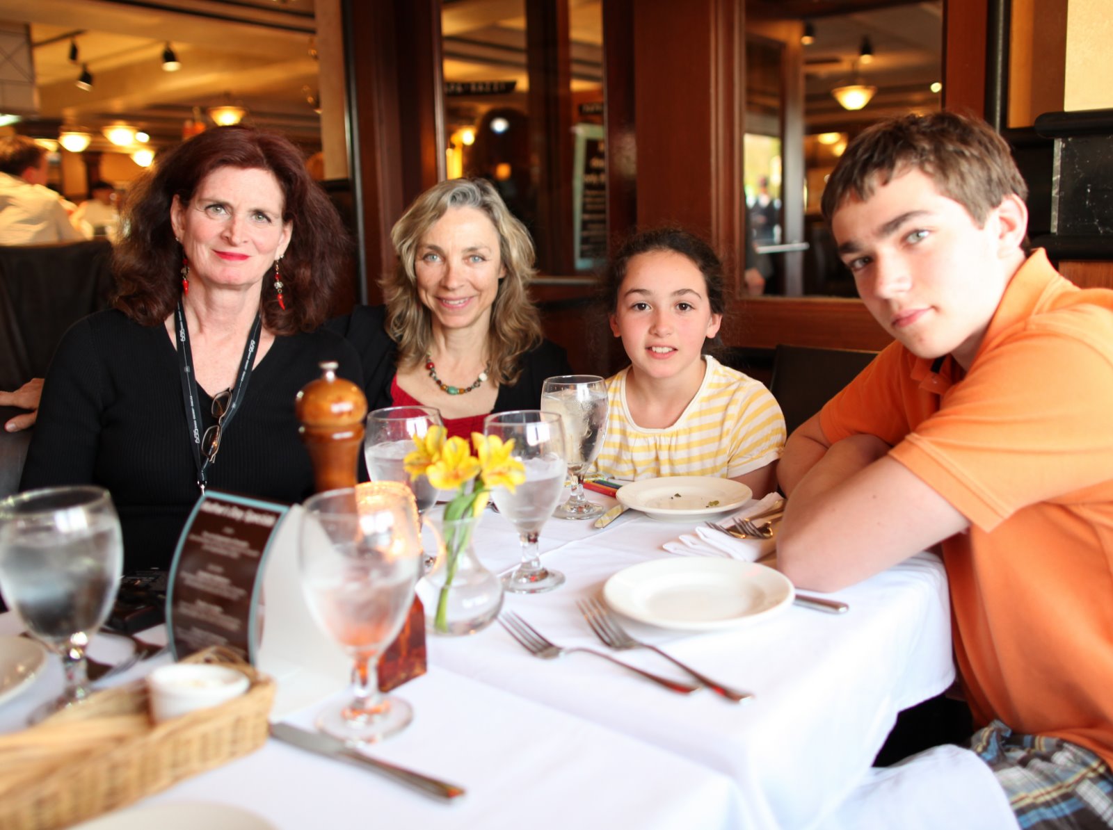 My birthday girl turned 47 today and just seems to grow more beautiful, vibrant and wise with each passing year. She received several dozen phone calls and e-mails from family and friends, was treated to lunch by her local chic clique, and celebrated with our family over dinner at the Asiana restaurant in Bedford. Maya created a very special hand made birthday card and the boys chipped in for a raspberry plant which they have committed to plant for her as well. Inspired by who knows what, the boys got into a playful wrestling match tickling each other and tumbling around much as they did when they were toddlers. It brought back fond memories and capped the evening on a very happy note.