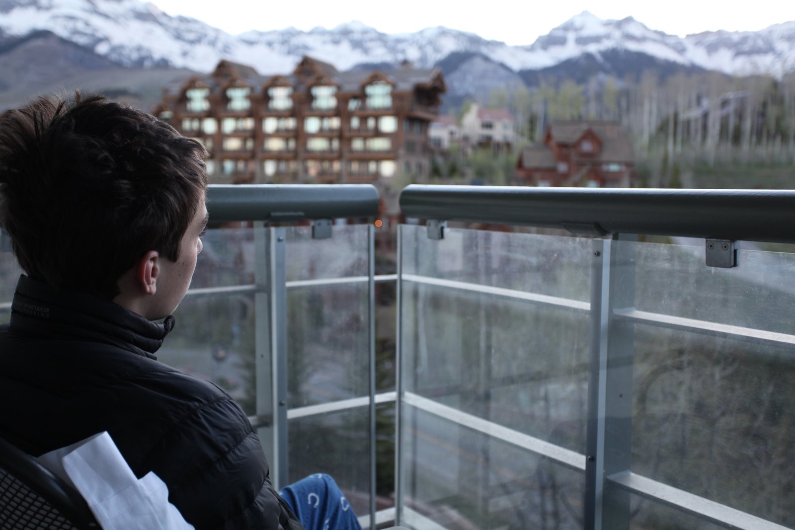 Our hotel is located in Mountain Village, a 15-minute gondola ride from downtown Telluride at an elevation of nearly 10,000 ft. Today we have no speaking engagements and we start the morning enjoying the spectacular views from our balcony.