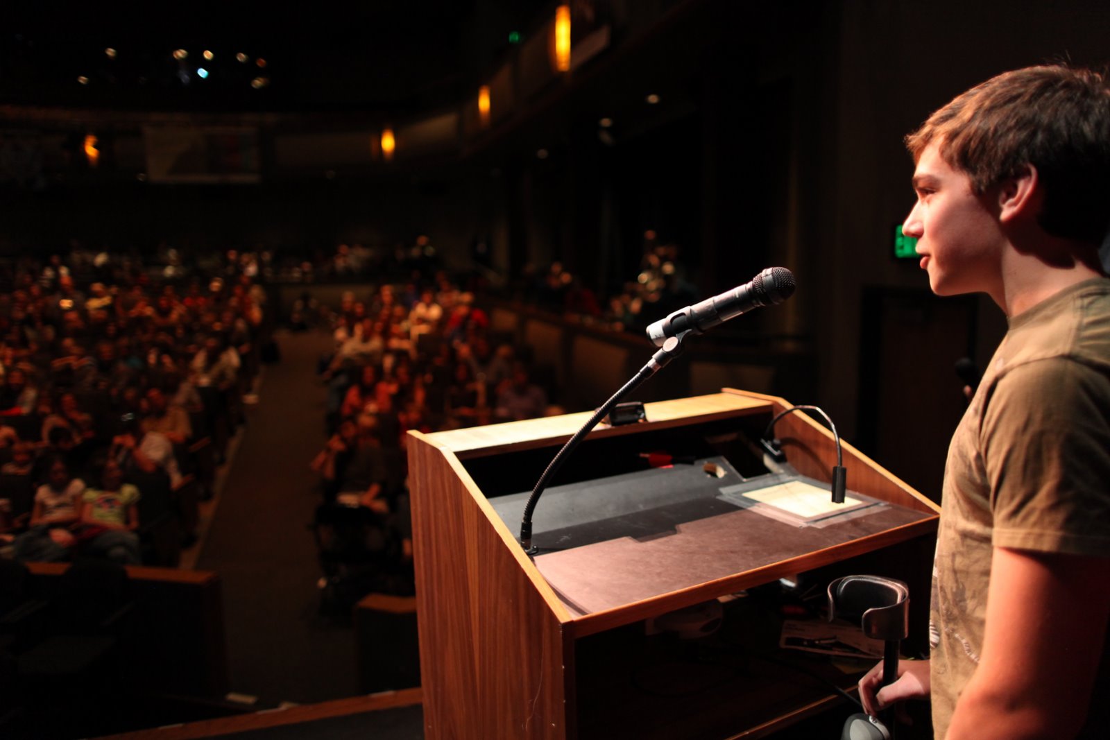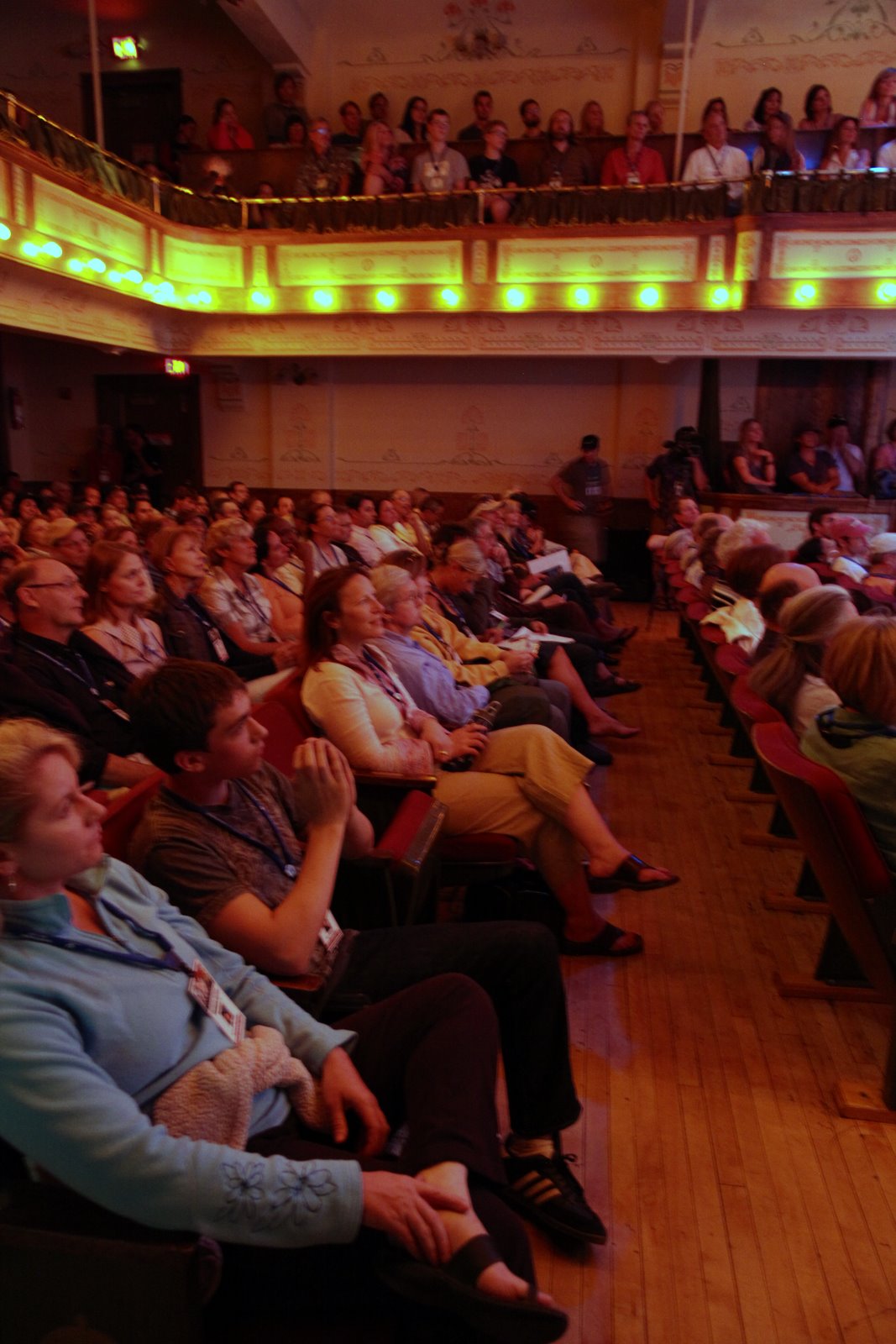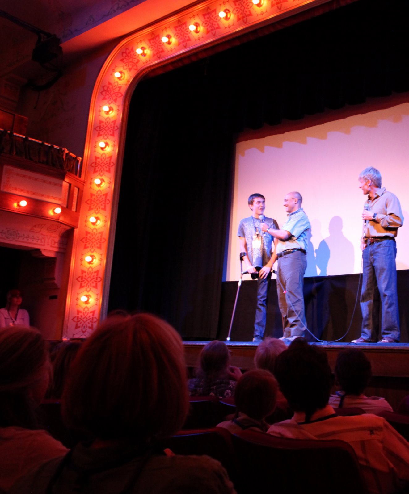 Nico’s Challenge screens for the second time this morning at the Palm Theater on a truly massive screen. I decide that it is OK to bring my camera on stage during our Q&A session and capture this nice image of Nicolai responding to a qestion from the audience.