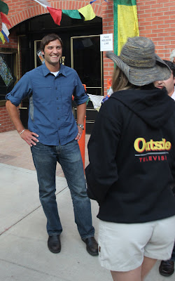 As guests of the festival we have four assignments to complete. The first is an interview with Outside Television during which we respond to questions about the film, our climb, and future plans. The crew included two cameramen, a sound engineer, a producer, the interviewer (pictured here) and several assistants.