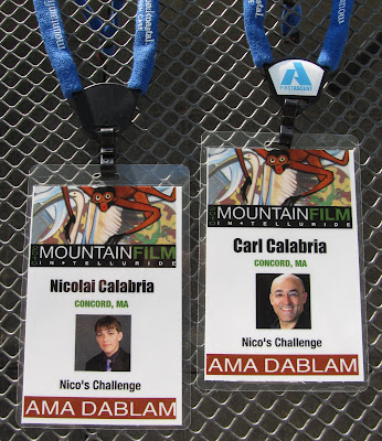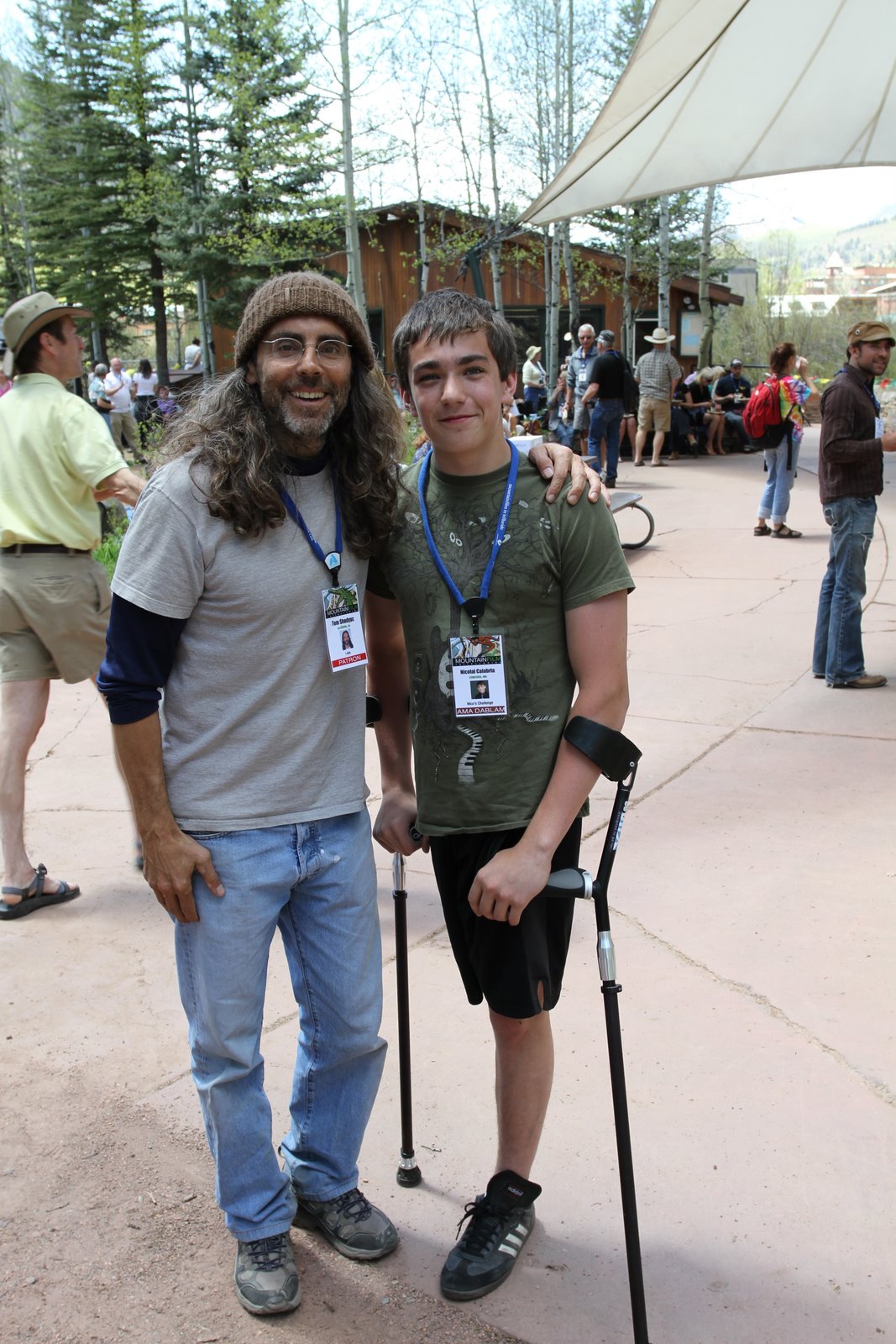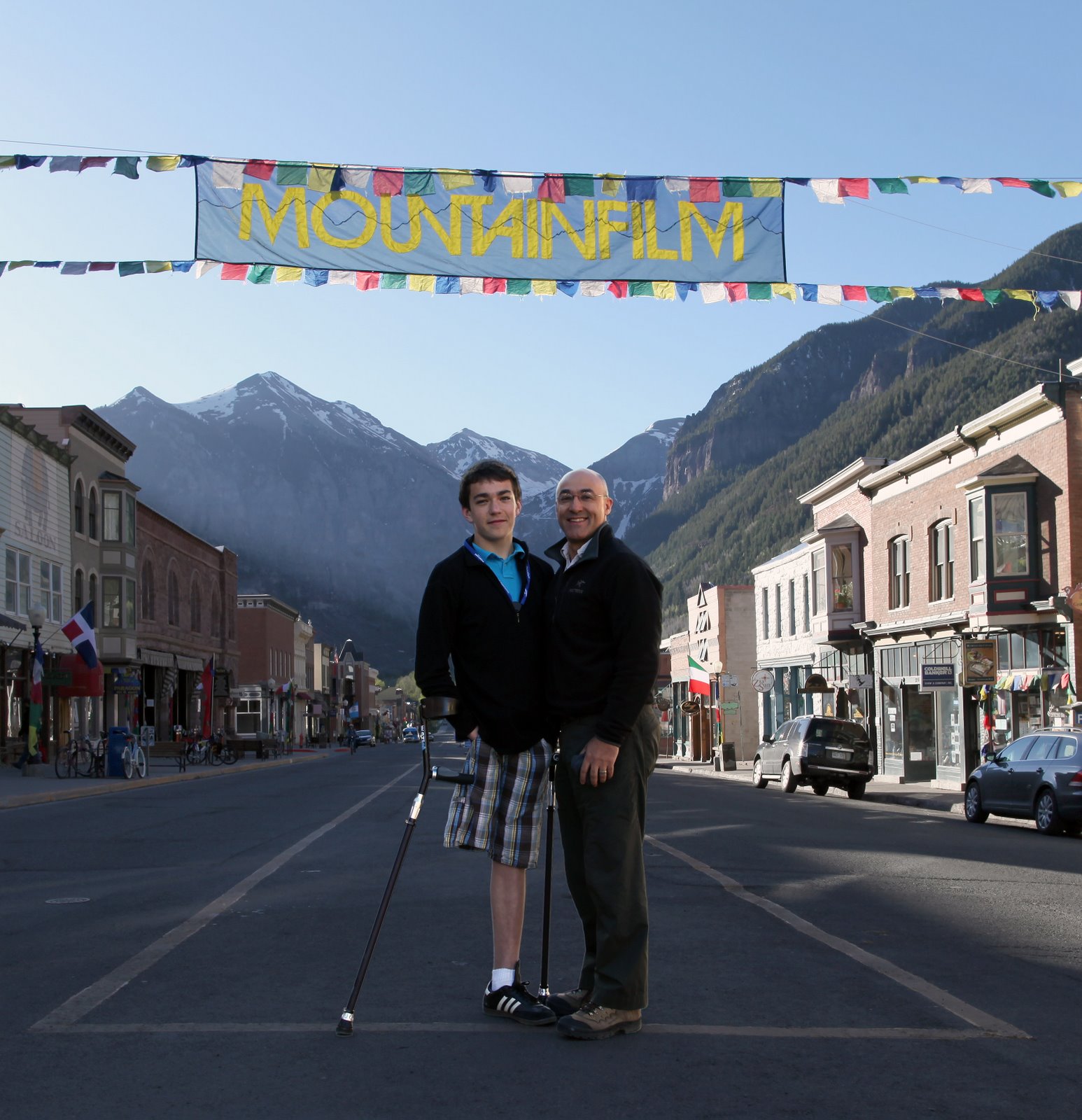 Nicolai and I have been invited to attend the Mountainfilm Festival where the short film documenting our climb of Mount Kilimanjaro will be screened. Nico’s Challenge, masterfully edited by local producer, Steve Audette, was one of ten documentaries selected from a field of 600 entrants. Even before picking up our credentials, which gave us Carte Blanche access to the entire festival, Nicolai is stopped several times on the street by local students and Mountainfilm volunteers who recognized him from an advanced showing of the film at the high school earlier in the day. I felt like I was traveling with a rock star.