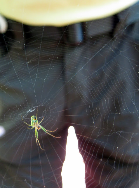 I have been trying to get exercise everyday and often that comes in the form of a lunch hour walk. I often take a trail through a local wetland and today I encountered this spider who had spanned the path with her web. Between the mosquitoes and ever encroaching vegetation I may have to seek another course until fall arrives. Another alternative would be to start riding my bike to work. Something to consider!