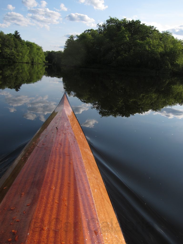 After work today I kayaked a new 6.2 mile section of the Concord River. The 2 hour upstream paddle took me from Bedford to the Concord Boat house. Jeanine just back from a special mother-daughter(and friend) shopping trip with Maya and Sarinnagh exchanged her car for mine at the put-in point and then picked me up and we loaded the kayak. We then returned to Bedford together where Jeanine switched back into her car and we all went out for dinner at Luigi’s Italian restaurant. It was close to 9PM by the time we were seated and dinner could not come quickly enough for this starving group.