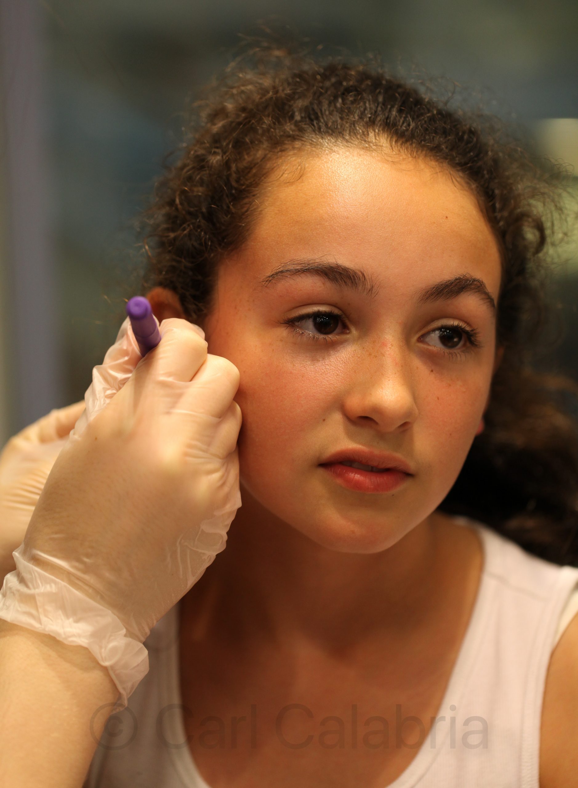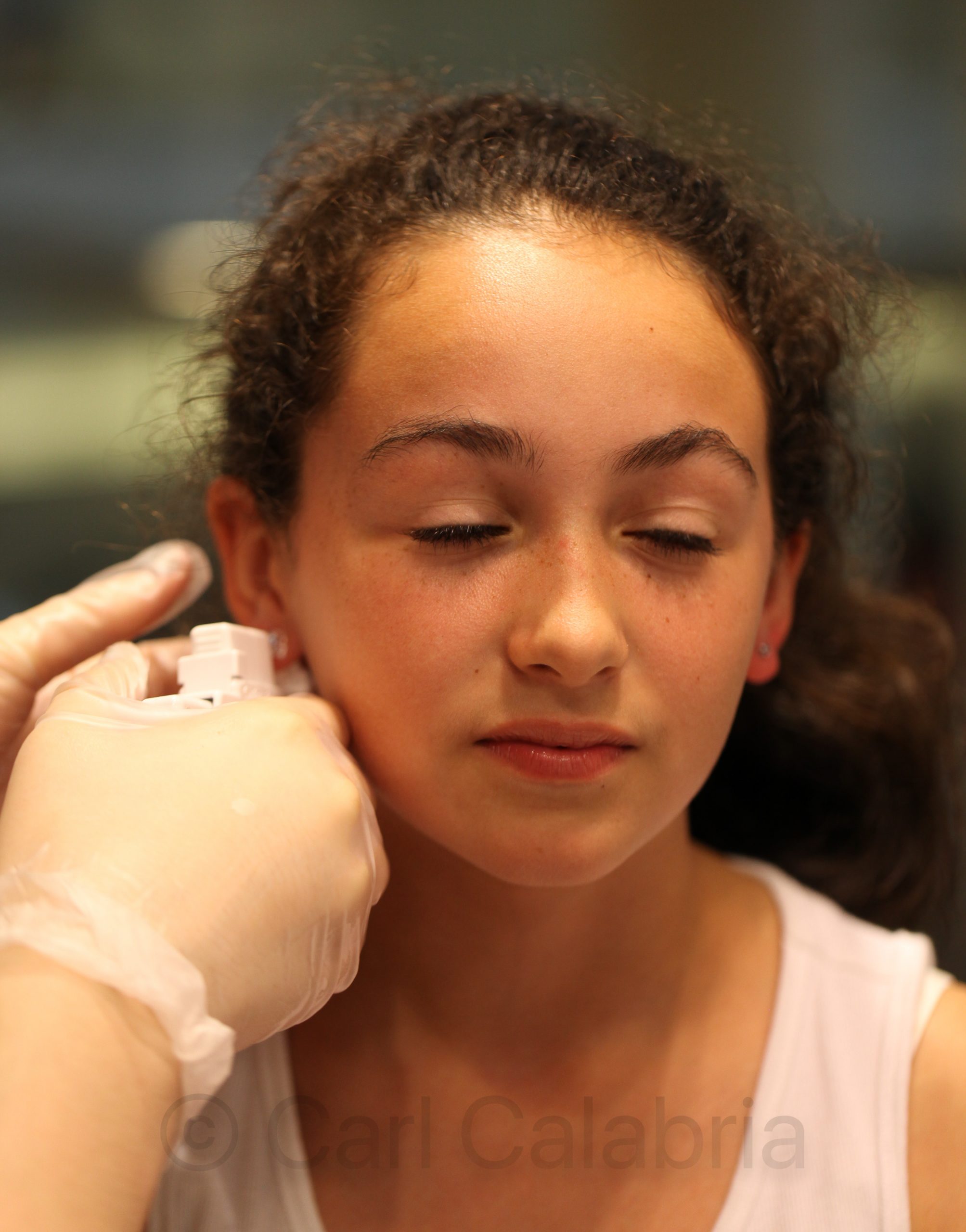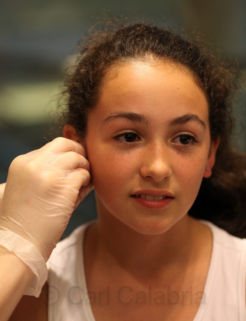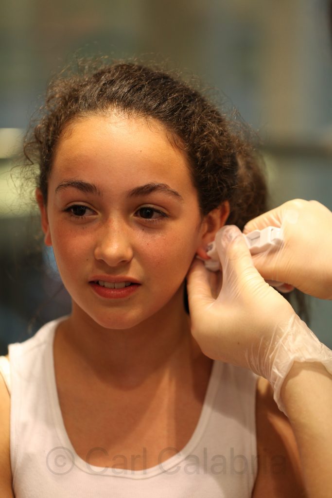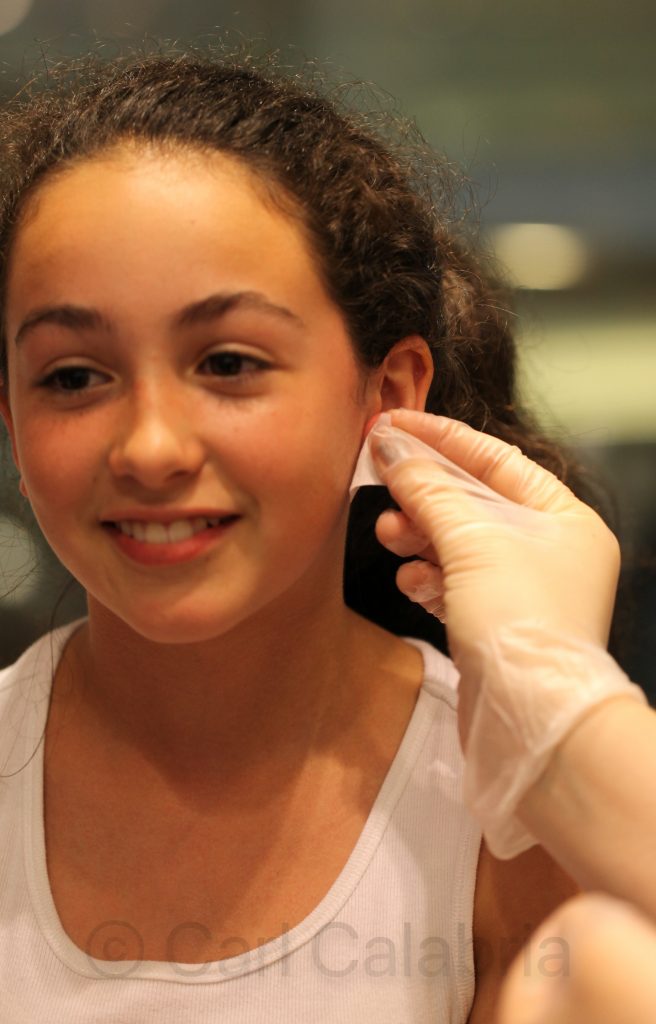 Using birthday money from her grandmother, Maya had her ears pierced this evening. Jeanine, her friend Sarinnagh, and I accompanied her to the mall where we witnessed this rite of passage. I have been a major proponent of delaying this day until Maya was 30. The thought of drilling holes in otherwise perfect little ears has been contrary to my fatherly instincts. Having watched Maya mature and blossom over recent months I found myself ready to let go and enjoy this milestone in her life.