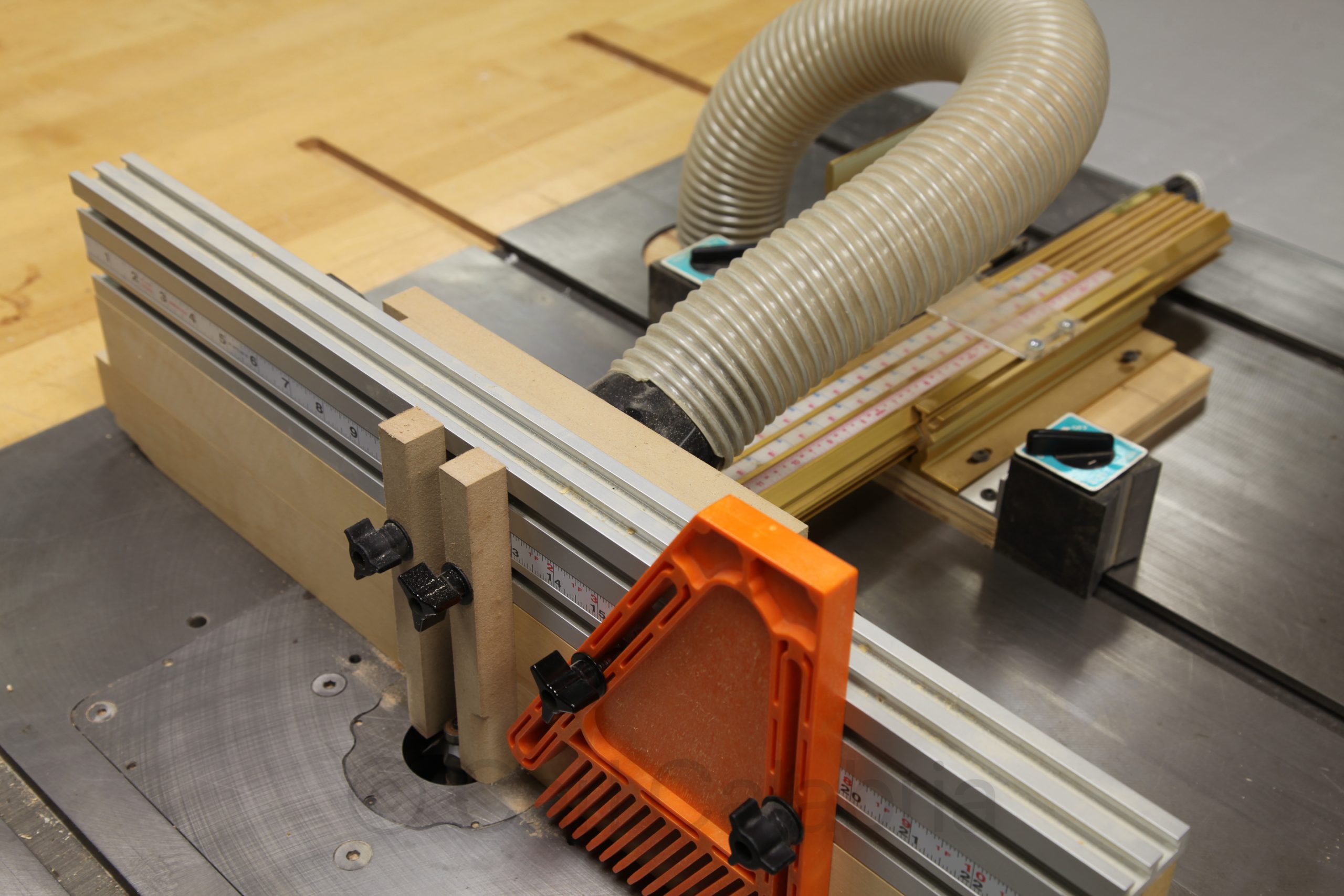 I modified my home built router table fence in preparation for a beveling operation needed for the kayak project. Half the fun for me in such projects is figuring out how to employ jigs to reduce the amount of manual labor needed or improve the quality of the resulting work. My router table fence mounts to my table saw top using powerful magnets and is equipped with a wood dust/chip collector that couples into my shop dust collection system through the saw.