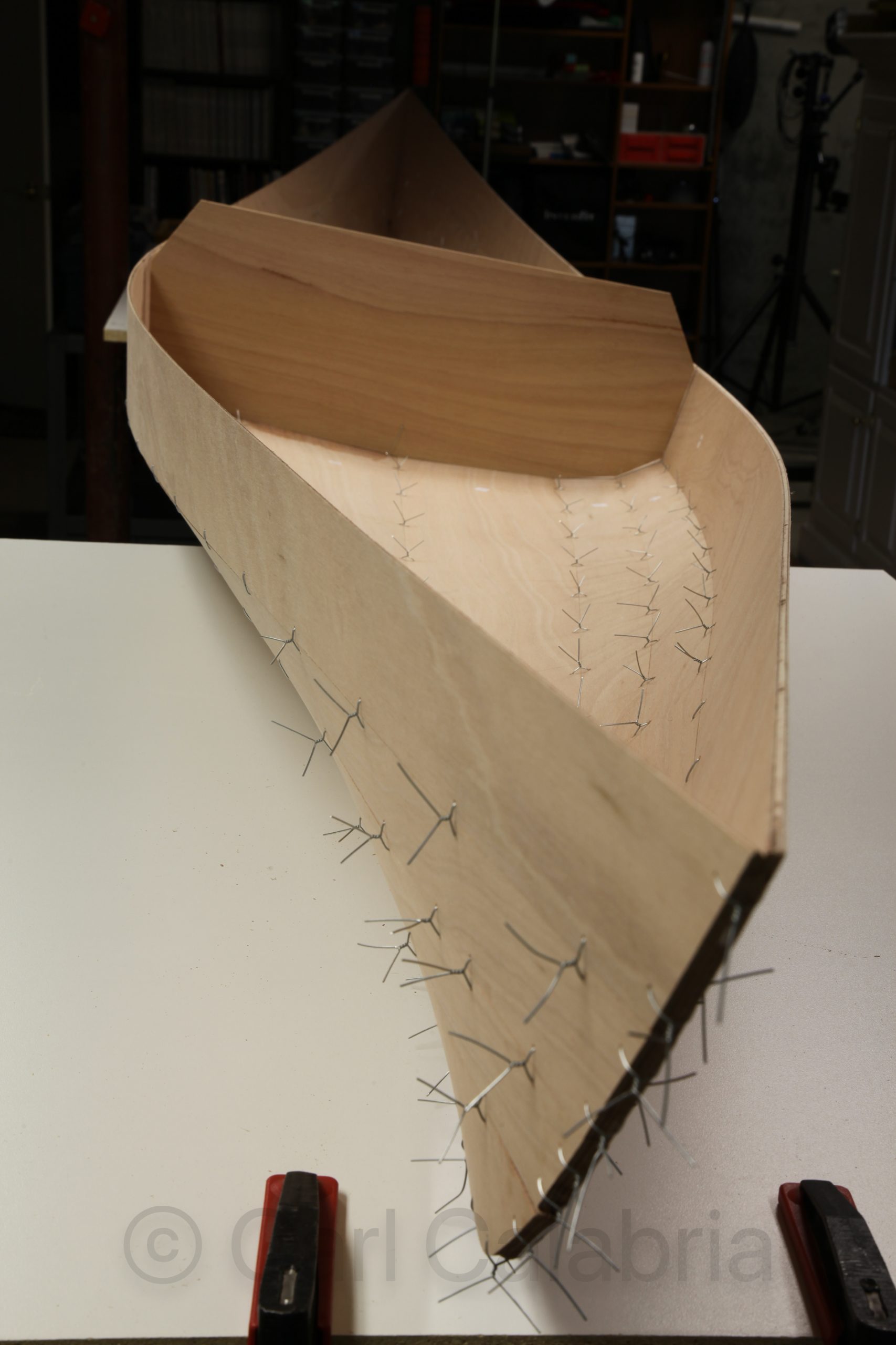 Maya and I made great progress on her kayak today. Strips of 1/4 inch plywood are stitched together with narrow steel wires to form the shape of the hull. We drill holes into adjacent panels, Maya threads the wire through the holes and I twist them tight, first with my fingers and then with a set of pliers. My fingertips are raw after several hundred iterations of this tedious procedure. Once the final shape has emerged we go back and adjust the wires until we get a straight keel line and just the right contours. Tomorrow we will epoxy the joints after which the wire stitches will come out. Spending time with Maya on this project is reward enough for the effort and I enjoy watching her problem solving like a true engineer. Both boys also pitched in for a few minutes during a critical step that involved passing several 15 foot strips across my router table.