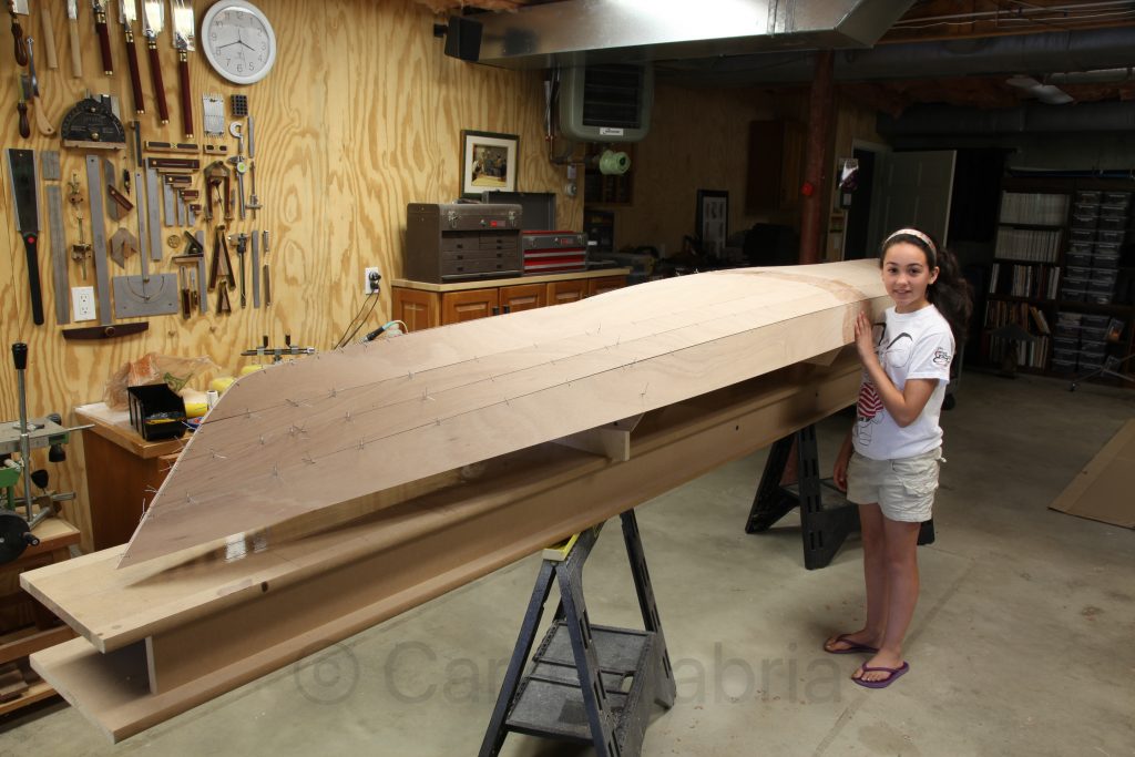 The family came out to cheer me on today as my team played in the semi-final round of our division’s playoffs. With a decisive 3-1 win we will play for first place honors next weekend. I scored one of my prettier goals of the season when I sprinted laterally across the field to win a header from their center midfielder which I placed to the feet of one of our strikers. Continuing my run and cutting to the goal, he fed the ball back to me. I beat the sweeper and unleashed a rocket which found the lower left corner of the net despite the keeper’s attempt to deflect it. Unfortunately, I did not finish the game after I injured the top of my quadriceps in a stupid attempt to save a ball from going out of bounds. My status for the finals next week is now highly questionable. Today is also Maya’s actual birthday and we had our family celebration which included a special dinner in which both father and daughter got to request foods for a special dinner. Maya received an envelope containing clues to her birthday present from Jeanine and I. The contents included a strip of fiberglass and a Popsicle stick. After some guessing she correctly deduced that her gift was a kayak. The kit will arrive this week and we will construct the wooden 14.5 footer over the summer. Maya was a daily helper as I constructed my kayak and she has always wanted to build her own.
