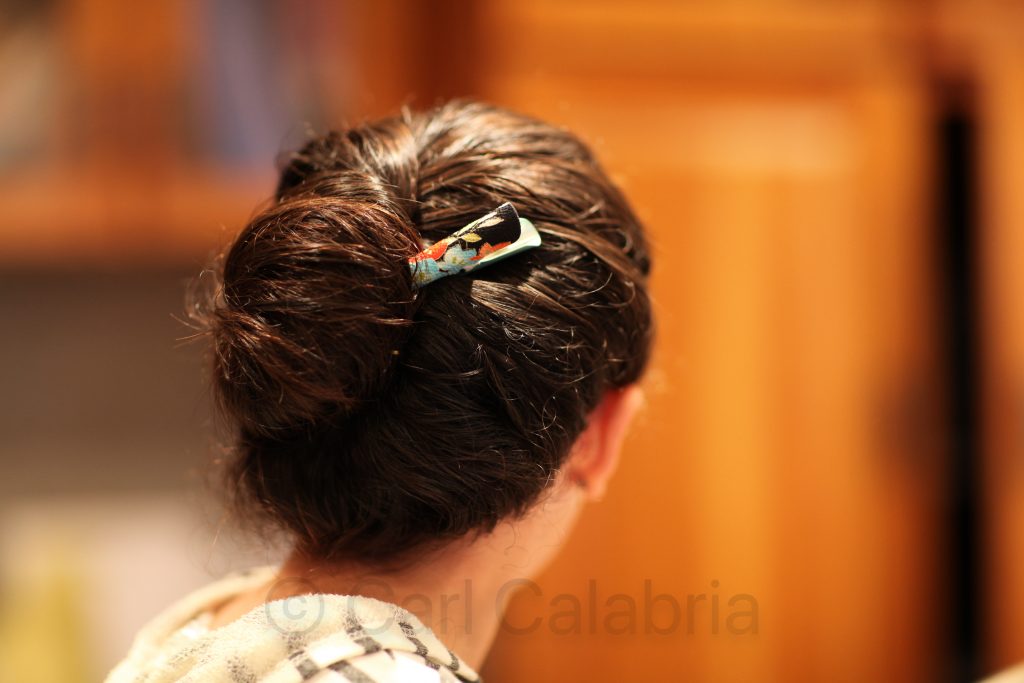 Mothers and daughters I am coming to understand share many seemingly insignificant rituals which form a very deep and altogether different bond than fathers and daughters. The pinning up of hair is one such enterprise. Using an antique clip, mother assists child with hair bun “winding”, clip placement and bobby pinning. This by way of contrast to my bonding activities with Maya. After months of asking for her own camping/hunting knife, I escorted her as she picked out a very serious looking knife with a 4″ blade and a single handed open and close design. I remember the feeling I had when I received my first knife and I saw the same look in her eyes. Priceless.