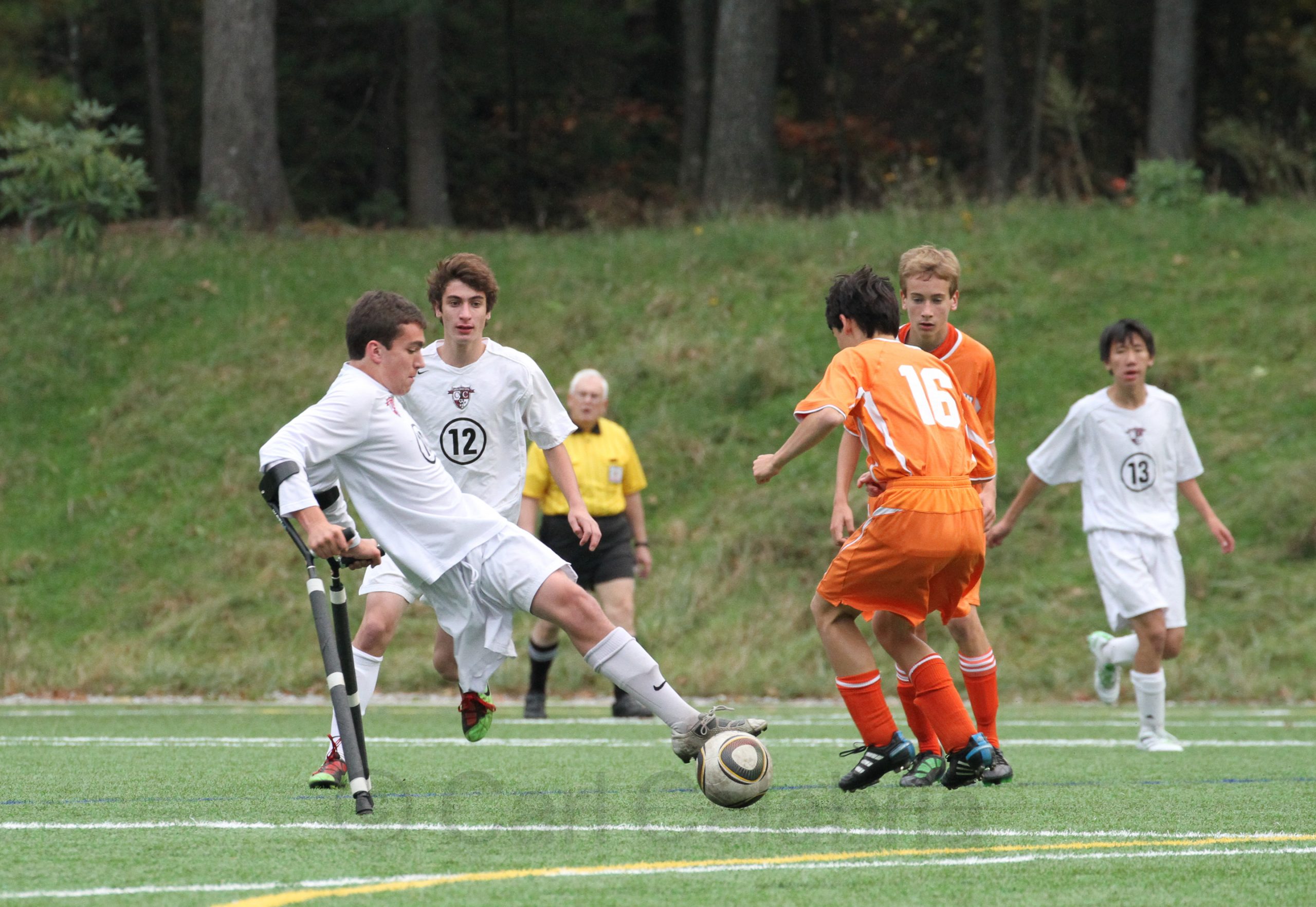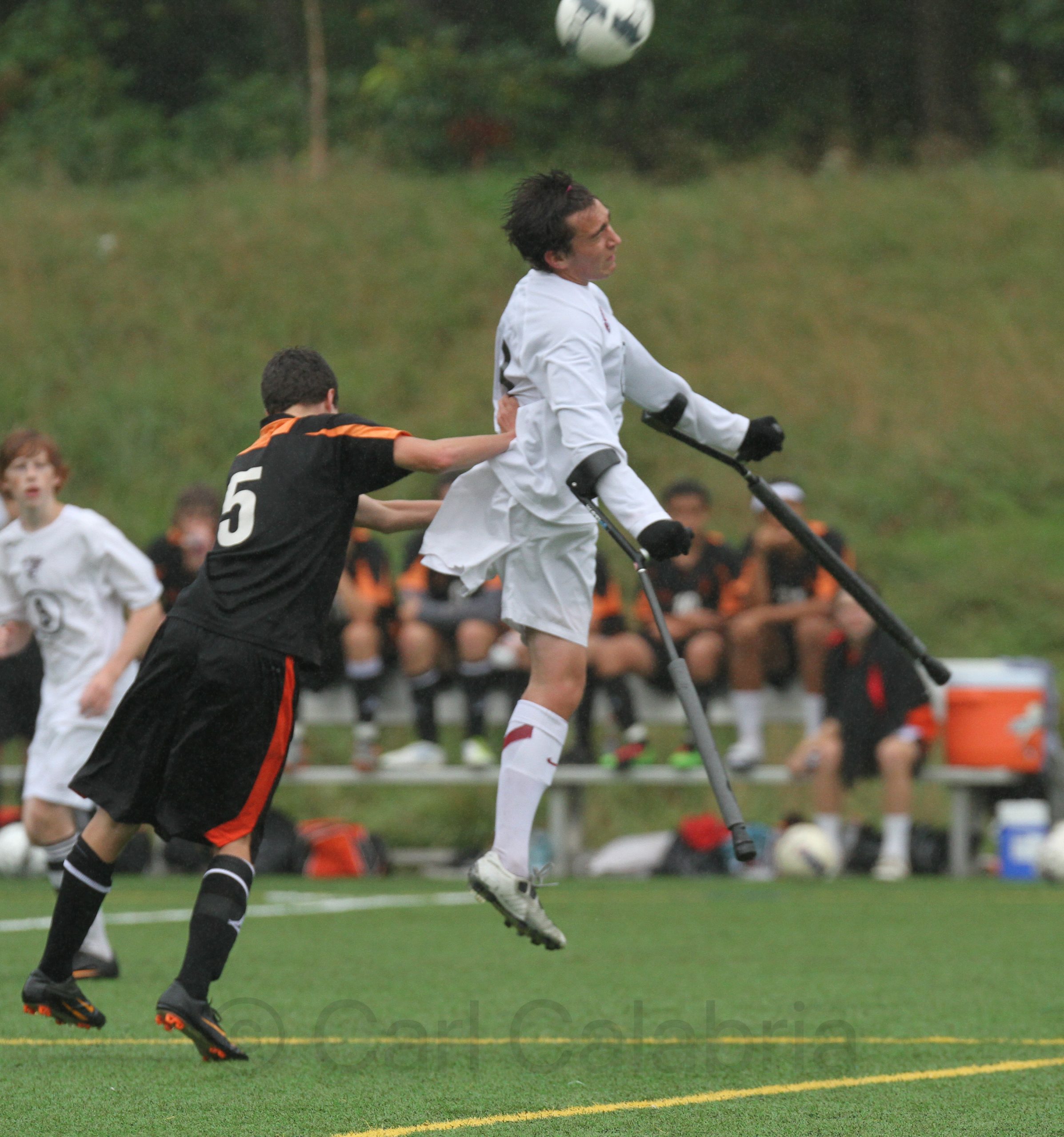 The Wayland defender charged with marking Nicolai eventually resorted to illegal tactics (pushing with his hands) in an attempt to win even a single head ball. Despite a constant light rain and cool temperatures, Nico was on fire today scoring one goal and setting up several others with extremely dangerous and pinpoint distribution. It is rarely fun to stand in the rain to watch soccer but Jeanine and I both enjoyed watching our son playing some of his best soccer to date.