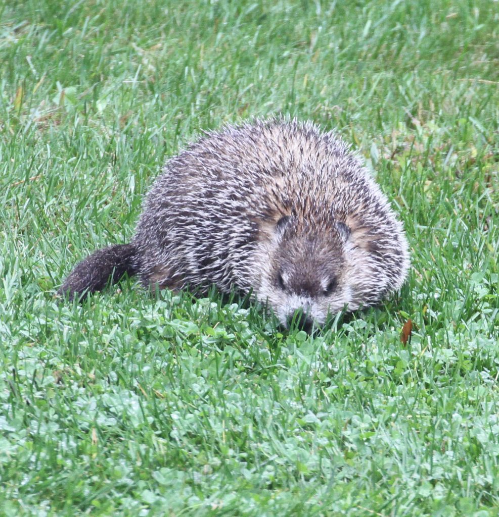 This photo of a woodchuck is courtesy of Jeanine who spotted the little fellow in our backyard today. This guy drives Nala out of her mind and she opted to pursue him across her electric containment boundary to ensure he was thoroughly vanquished from her domain. Fortunately, her collar was set to the lowest shock level. It is now set to medium and her next yard break is going to be less inconsequential.