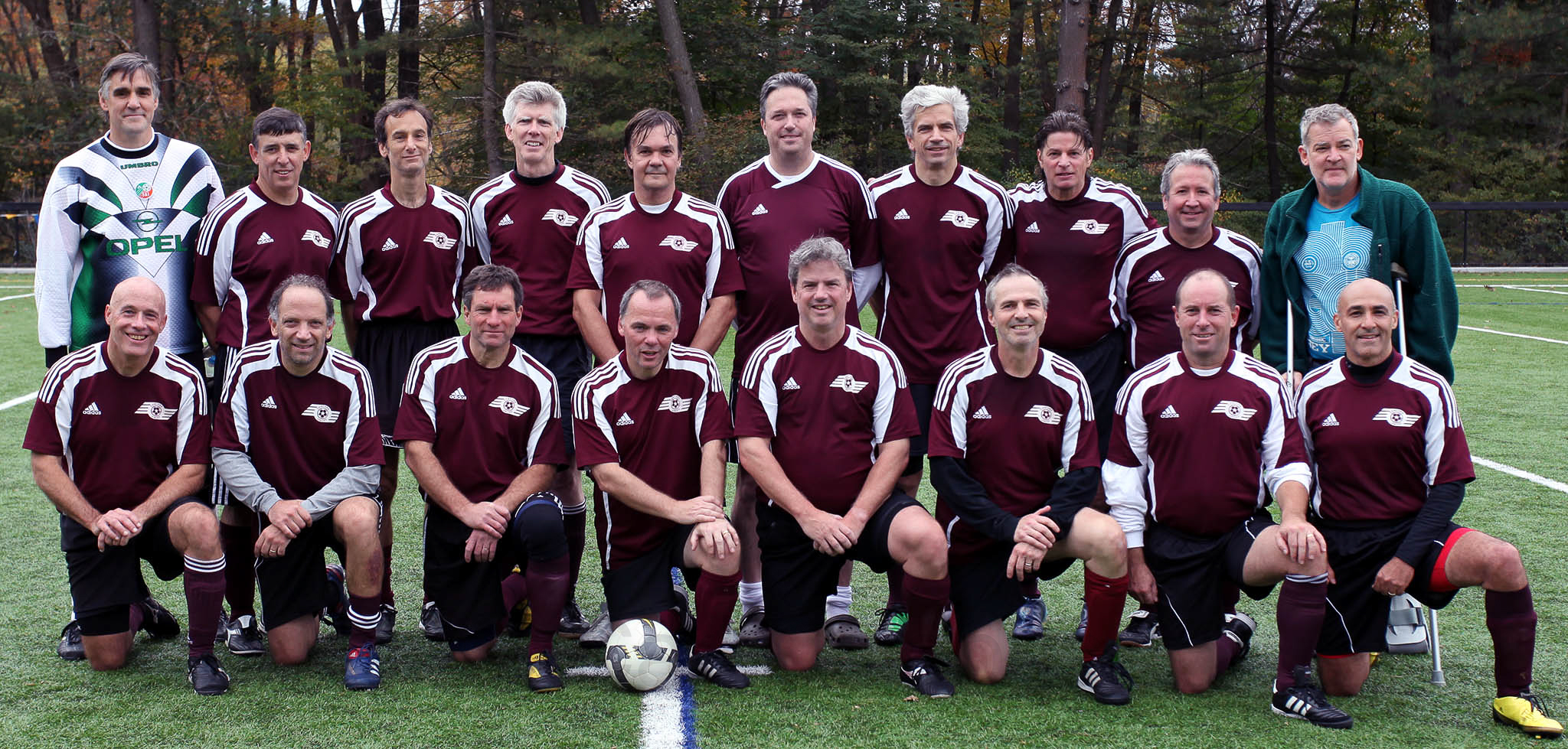 I scored an inconsequential goal in the final minute of my soccer match this morning. It was an easy tap in following an intense sprint to intercept a pass in front of the net. The one sided affair ended in a score of 9-1. A win next week will secure promotion and it is sure to be a close match (we tied in our last meeting with Needham). After the game I took a team photo which will be used to update the league website.