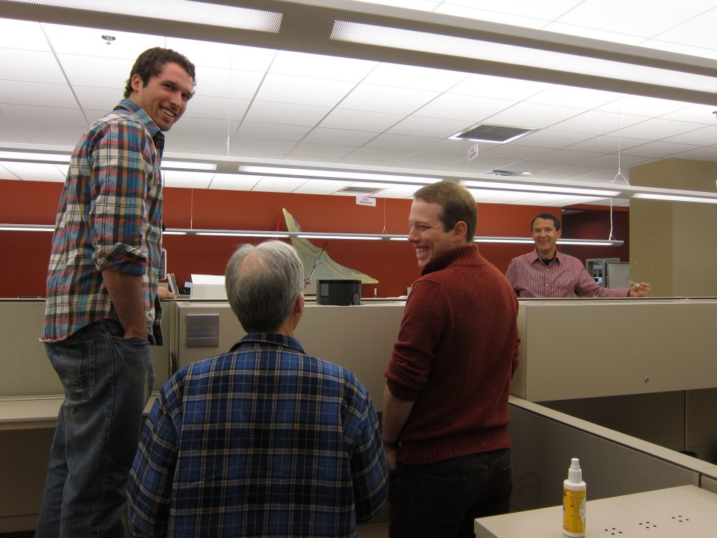 As I was walking around the office today I noticed a couple of engineers standing on the desk in a vacant cubical. Curious about this high altitude gathering I was drawn in to investigate. They were testing a new design concept for picking up dust with one of our robots. Dust it turns out is rather difficult to simulate so they went in search of the real McCoy which they found in abundance on the tops of the cubical bookshelves. Earlier in the day I met with a former colleague of mine who I hadn’t seen in 6 years. He is a brilliant individual and would be a great addition to the team at iRobot. The trick now will be finding the right opportunity for him. We announced Q3 earnings after the close of business and reported another stellar quarter.