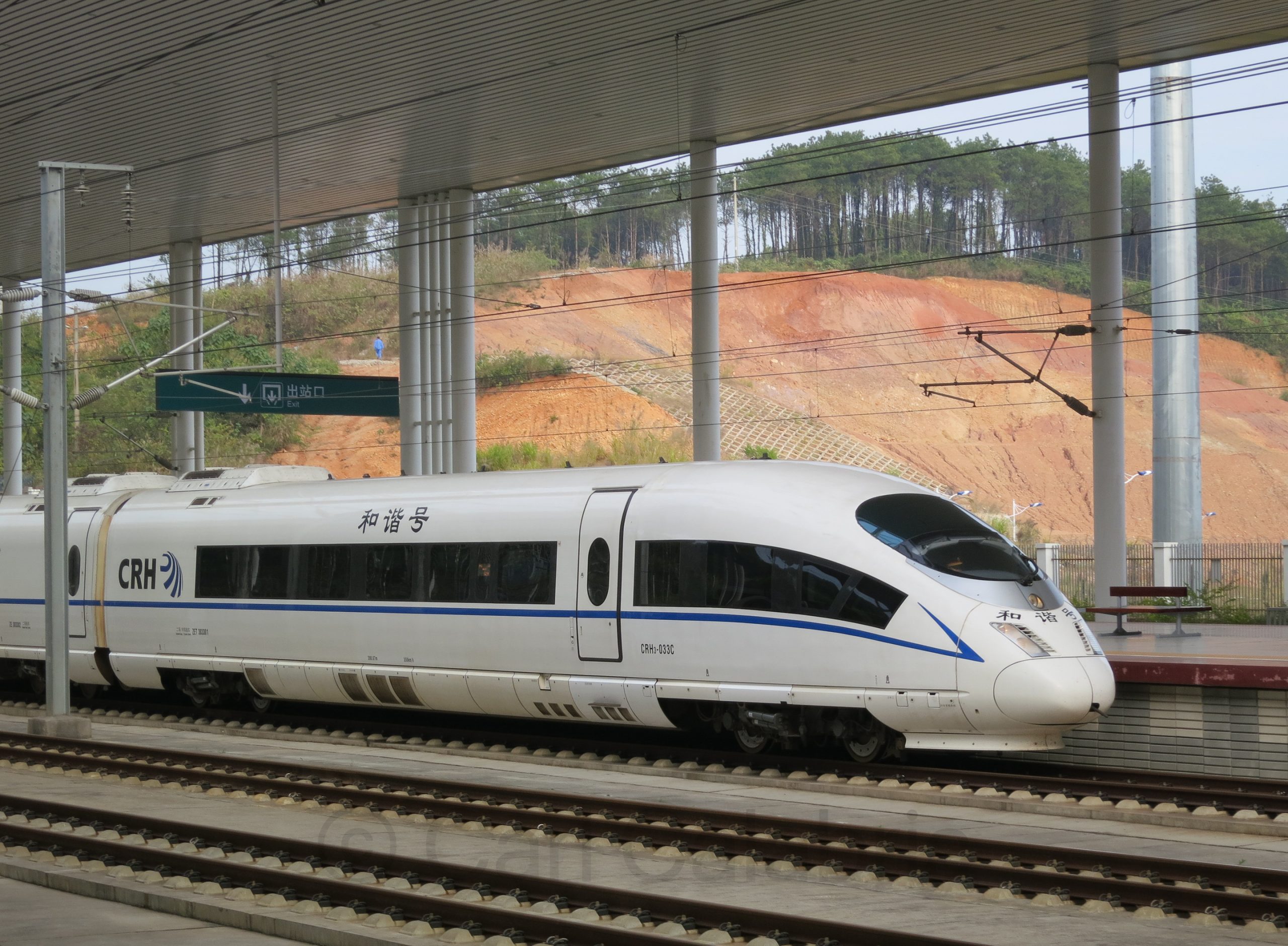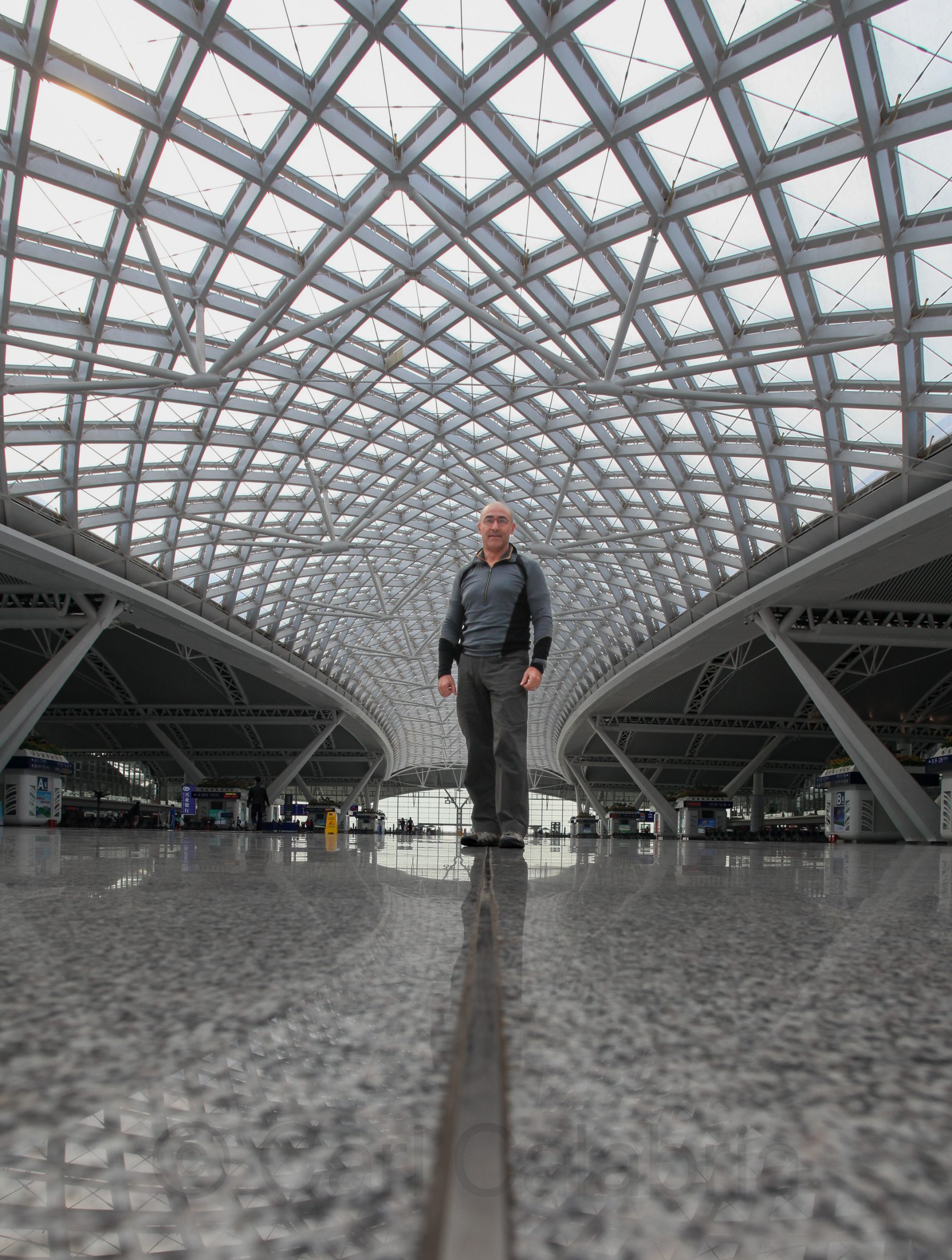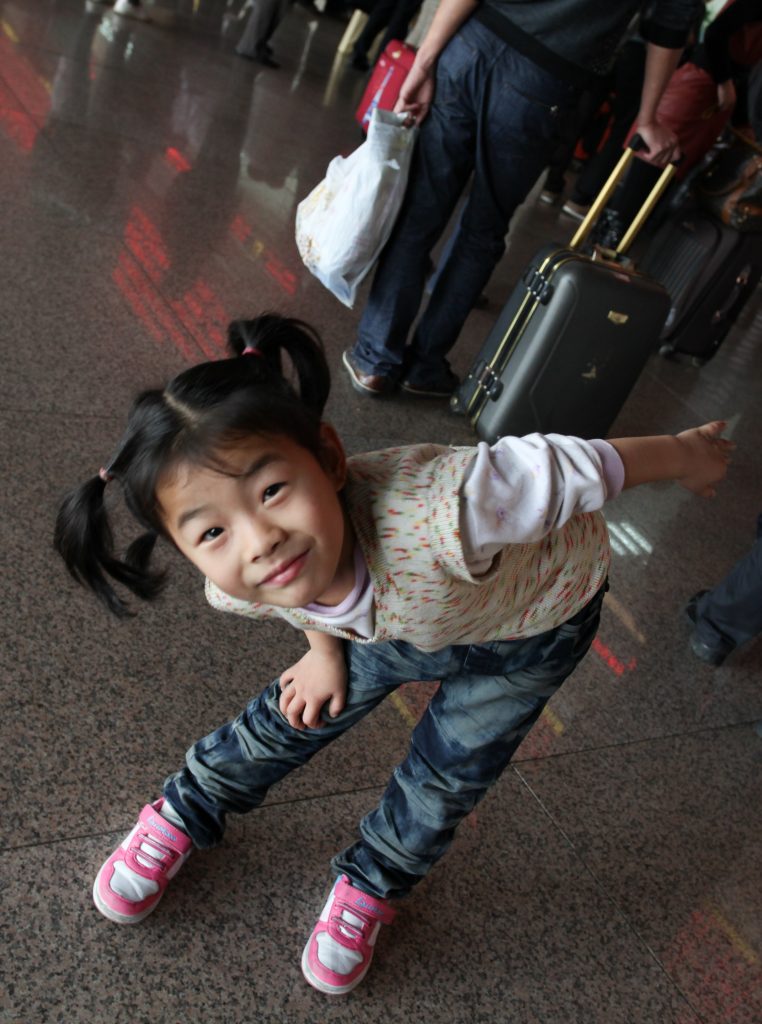 After visiting Jabil (our second contract manufacturer) during the morning we traveled to Shaoguan by bullet train operating at 190mph. The Chinese government has made it a priority to develop the high speed rail system throughout the country to facilitate inland development. As impressive as the train is, the station from which we departed was even more so. The shear scale was only surpassed by the architectural beauty. I place my camera on the ground to make this self portrait with the ceiling of the station as a backdrop. The little girl was interested in my camera and was thrilled when I showed her this image of herself.