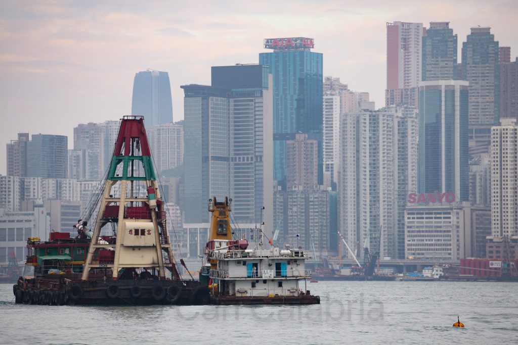 After our meeting, we returned to Hong Kong where I used the final hour of daylight to grab a few pictures. Because of the “haze” (read pollution) it is impossible to take good photographs of objects at a distance. Because of this, I decided to use an object in the foreground to anchor a photograph that still included the cityscape I was interested in capturing as a background element.