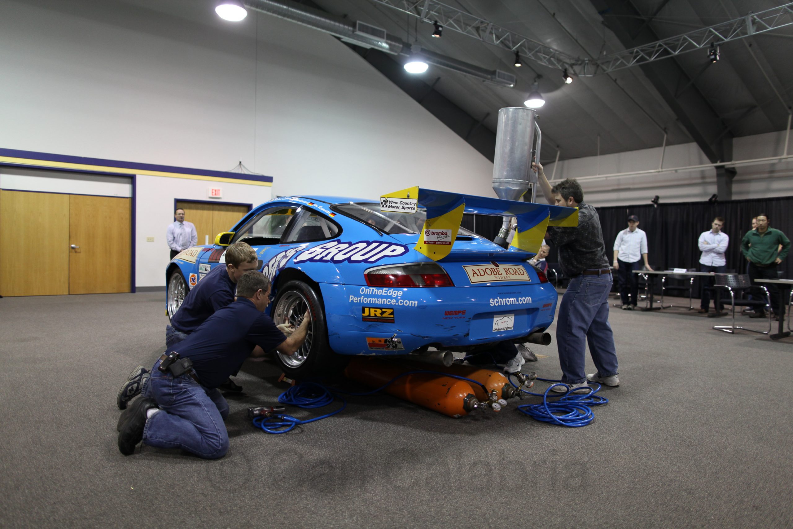 For the second time this week I participated in a team building event led by one of my direct reports. Our mechanical engineering team faced two challenges that rewarded teamwork, collaboration, planning and communication. The first was a pit stop competition in which teams of four serviced an actual race car (positioned floor jack, simulate lifting car, adding an exact amount of fuel, washing the windshield and headlamps, and replacing two tires with pneumatic wrenches). The second event featured a 60 minute endurance race with 8 driver changes and a strict set of rules and time penalties for violations. Everyone was a winner and I could not have been more pleased with the event and the outcome.